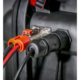 La valise est équipée d'une sortie puissance moteur + une sortie régulée supplémentaire 12 volts 20A étanche pour le(s) sondeur(s) et les accessoires électroniques.