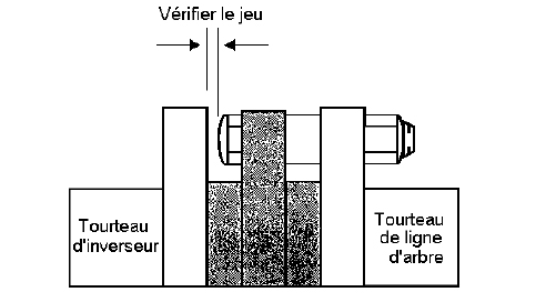 Installez des cales d’épaisseur entre la tête de boulon rouge et le tourteau de l’inverseur.