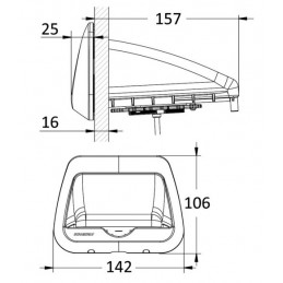 Dimensions d’encastrement : 142 x 106 x 157 mm.