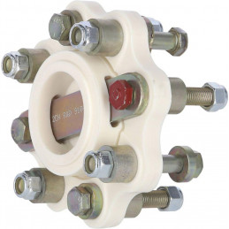 (Modèle 910-026) Accouplement semi-élastique en polyuréthane pour moteur marin, conçu pour Twin Disc. Absorbe les chocs, vibrations et bruits, protège la ligne d’arbre, et compense les désalignements temporaires. Fourniture complète avec visserie, sans entretien. Puissance : 28 CV / 100 tr/min Diamètre tourteau : 146 mm Centrage : 76,2...