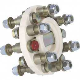 Accouplement semi-élastique en polyuréthane pour moteur marin, conçu pour Twin Disc. Absorbe les chocs, vibrations et bruits, protège la ligne d’arbre, et compense les désalignements temporaires. Fourniture complète avec visserie, sans entretien.