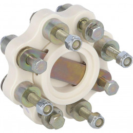 Accouplement semi-élastique en polyuréthane pour moteurs marins, compatible avec BW, ZF-Hurth et Volvo. Conçu pour absorber chocs, vibrations et bruits, protéger la ligne d’arbre et compenser les désalignements temporaires. Fourniture complète avec visserie, sans entretien.