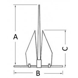 Poids (kg) comme une ancre inox (kg) Pour Bateaux  Sac toile (optionnel) A (mm) B (mm) C (mm)