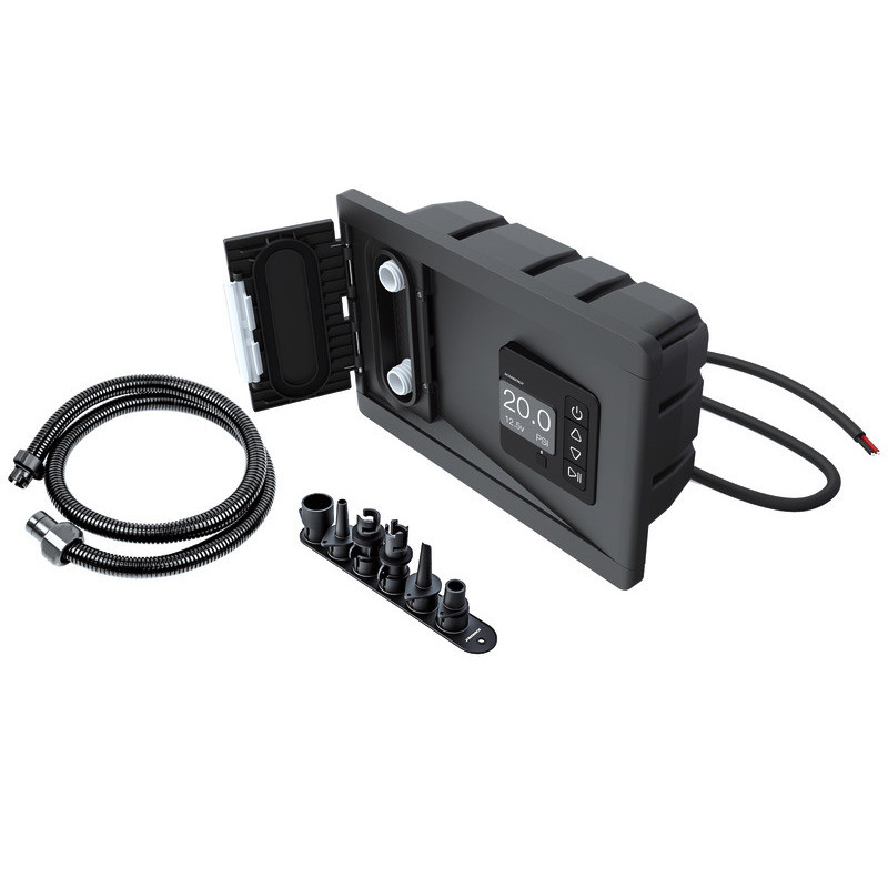 Grâce à sa construction étanche IPX6, le gonfleur résiste aux conditions difficiles des environnements marins. Son design compact et peu profond permet une intégration facile sur presque tous les panneaux à bord. Il est livré avec un tube de gonflage de 2,5 mètres et un kit de raccords-valves universels, prêts à l’emploi.