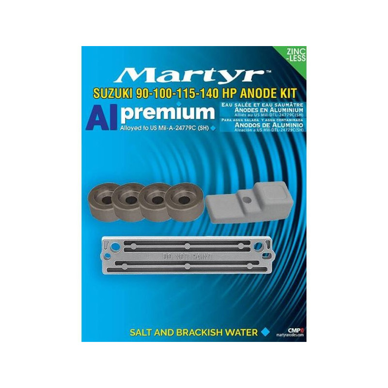 Protégez efficacement votre moteur Suzuki de 90, 100, 115 et 140 CV avec le kit d'anodes en aluminium de la marque Martyr . Conçu pour offrir une protection complète contre la corrosion marine , ce kit assure une longévité et une performance optimales même dans les environnements marins les plus exigeants.