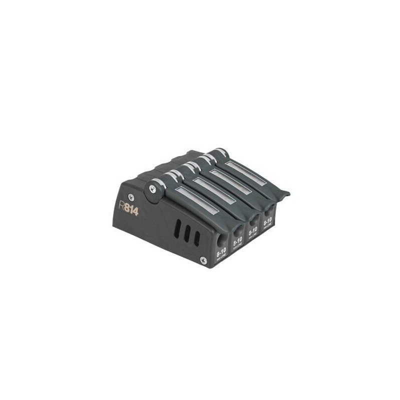 Bloqueur V-CAM 814Trois bloqueurs pour cordages de 8-10, 10-12 et 12-14 mm; disponibles en version simple, double, triple ou quadruple. Le V-Cam 814 est fabriqué à partir d’une coque structurelle en résine résistante aux UV, avec renforts internes en acier inox, une embase aluminium et enfin une came avec un mécanisme en acier inox Aisi 316. Le...