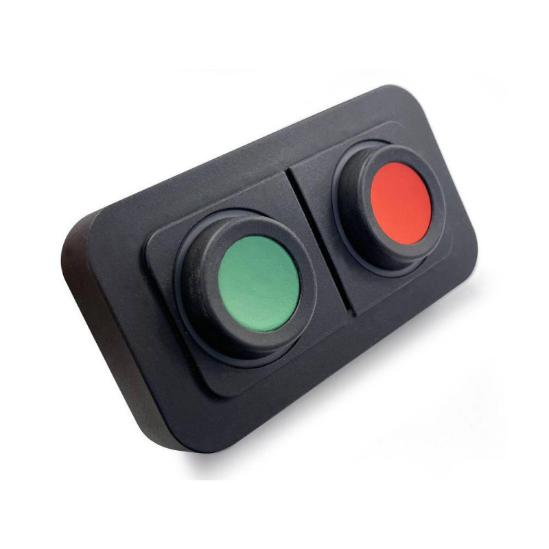 Clavier Powerkey Pro 2 positions, touches personnalisables 24 mm, boîtier étanche IP67/IP69K, idéal pour le cockpit, la cabine ou tout environnement marin ou industriel.