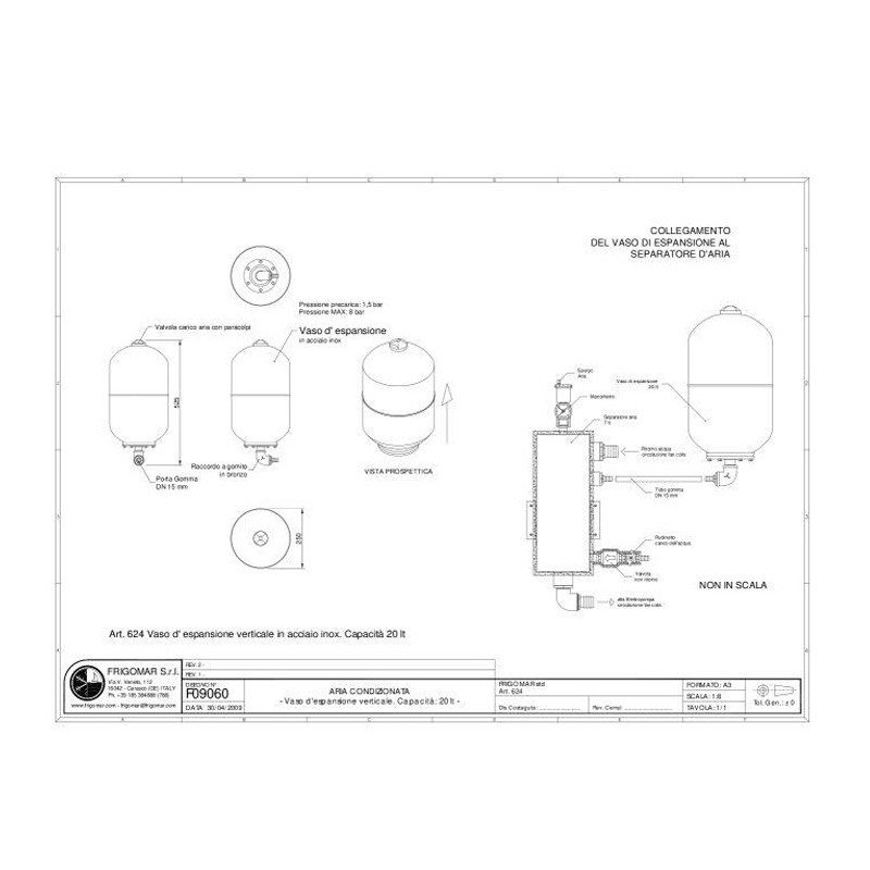 Le réservoir d’expansion Frigomar – 20 L est un composant essentiel pour les circuits de climatisation marine ou à eau glacée. Il compense les variations de volume dues à la dilatation thermique du liquide, garantissant une pression stable et un fonctionnement sécurisé du système.