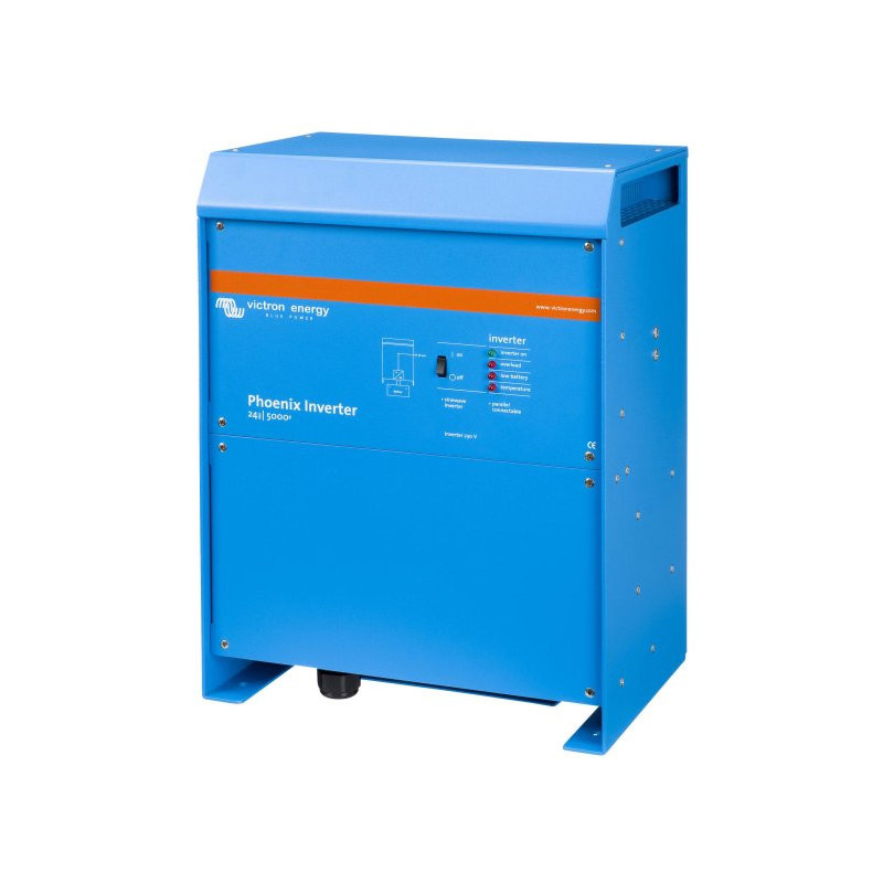 Le convertisseur Phoenix de Victron Energy 24V/230VAC - 5000VA est un modèle de haute performance conçu pour convertir une tension continue de 24V en une tension alternative de 230V. Avec une capacité de 5000VA, il offre une alimentation fiable et stable pour des applications à forte demande énergétique. Ce convertisseur est particulièrement adapté aux systèmes hors réseau, aux installations solaires, ou aux véhicules nécessitant une alimentation continue et propre