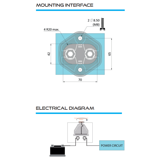 Coupe batterie unipolaire - 250A avec coupure auxiliaire D-Soderep Ecans