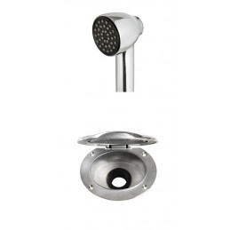 Offrez à votre bateau une installation de douche de pont élégante, robuste et fonctionnelle avec le boîtier Elissa équipé de la douchette Keji II Continuum Flow. Conçu en acier inox AISI 316 avec capot auto-portant, ce boîtier est idéal pour un usage intensif en milieu marin. La douchette à tête surdimensionnée et sa douille interne en caoutchouc anti-vibration assurent un confort d’utilisation optimal et une grande longévité.