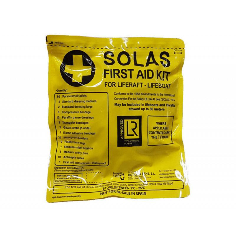 La trousse à pharmacie pour radeau de sauvetage conforme à la réglementation SOLAS est conçue pour répondre aux besoins d’urgence en mer. Compacte et légère, elle contient les éléments essentiels pour administrer les premiers soins en situation critique. Un équipement indispensable pour garantir la sécurité des passagers en cas d'incident.