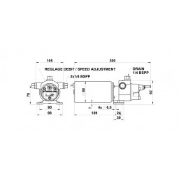 Le groupe RV3 est réversible par changement de polarité aux bornes moteur. Le réglage du débit est obtenu par une vis qui permet d’ajuster avec précision le temps du déplacement bâbord/tribord. Il est équipé de clapets anti-retour.