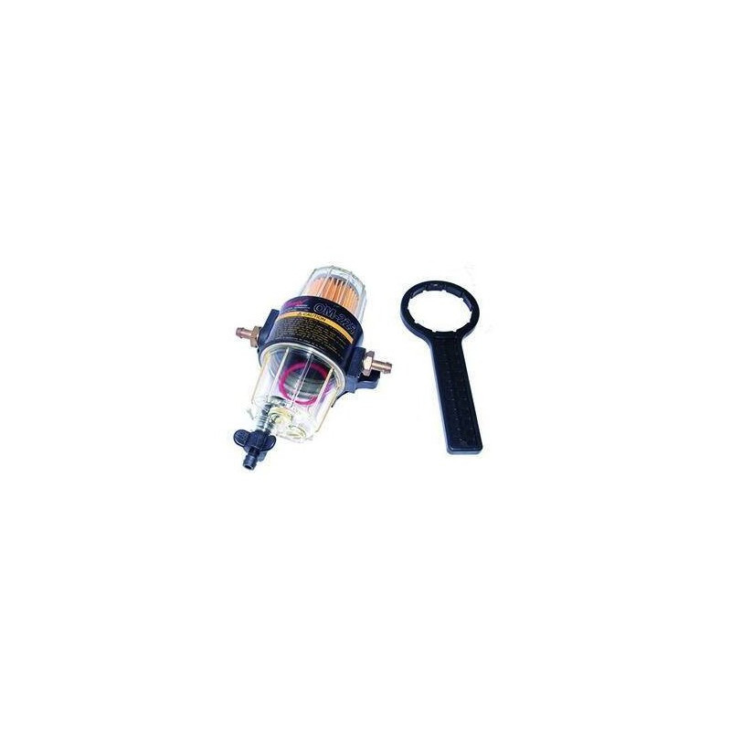 Le filtre décanteur essence avec raccords ø8 mm est un préfiltre performant conçu pour protéger les moteurs marins jusqu’à 70 chevaux. Grâce à sa filtration fine de 10µ, il élimine efficacement les impuretés et l’eau contenue dans le carburant, assurant un fonctionnement fiable et durable du moteur.