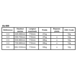 SA650 ALUTECH 600 830 – 1030 mm Cuir Naturel Noir Oui 355° 50 kg