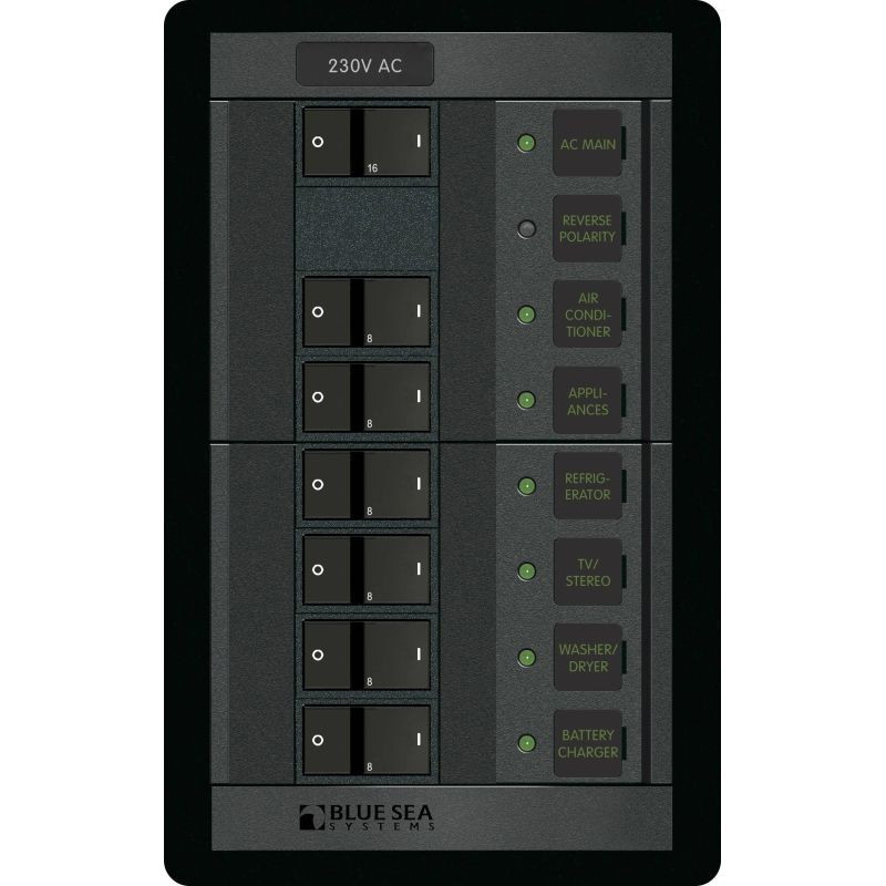 Tableau électrique Blue Sea 360 – 230VAC – 6 positions avec interrupteur principal (FR)