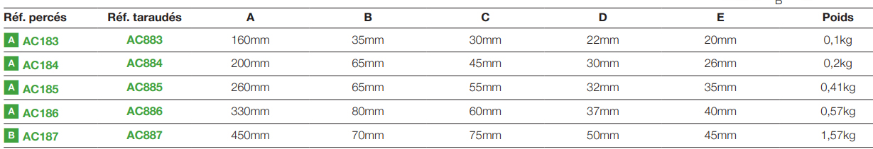 Taquets taraudés :