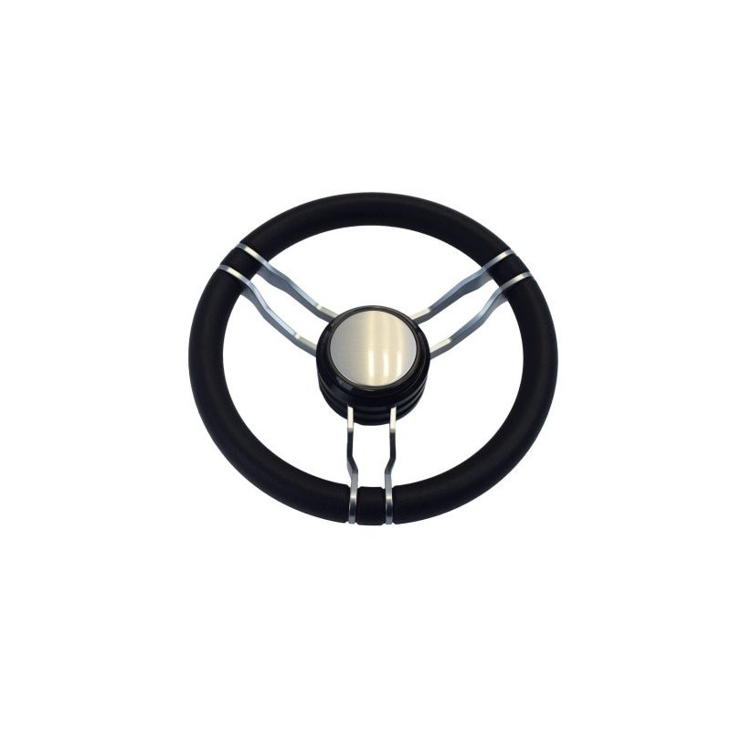 Ce volant Tino combine un design moderne avec une construction robuste, parfait pour les environnements marins ou techniques. Les branches chromées ajoutent une touche d'élégance à sa finition fonctionnelle en polyuréthane.